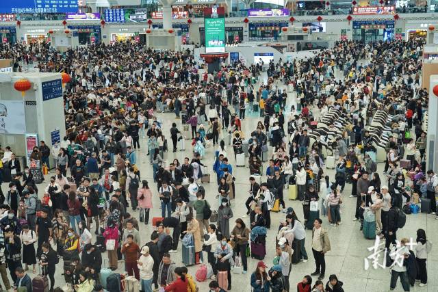 From the perspective of travellers, the number of people aged 20 to 39 returning home decreased by 5.3% compared with the same period in 2023; For people over 60 years old, the travel volume has increased by nearly 30%.The data shows that "reverse Spring Festival travel rush" has become a new trend and new trend this year. Guangzhou and Shenzhen are not only popular starting points, but also popular destinations. Older people from Sichuan, Hubei, Hunan and other working provinces are willing to go to their children’s workplaces for Chinese New Year reunion.During the period of Spring Festival travel rush, the total number of major stations in Guangdong reached 42.891 million, including 10.454 million in Guangzhou South Railway Station.